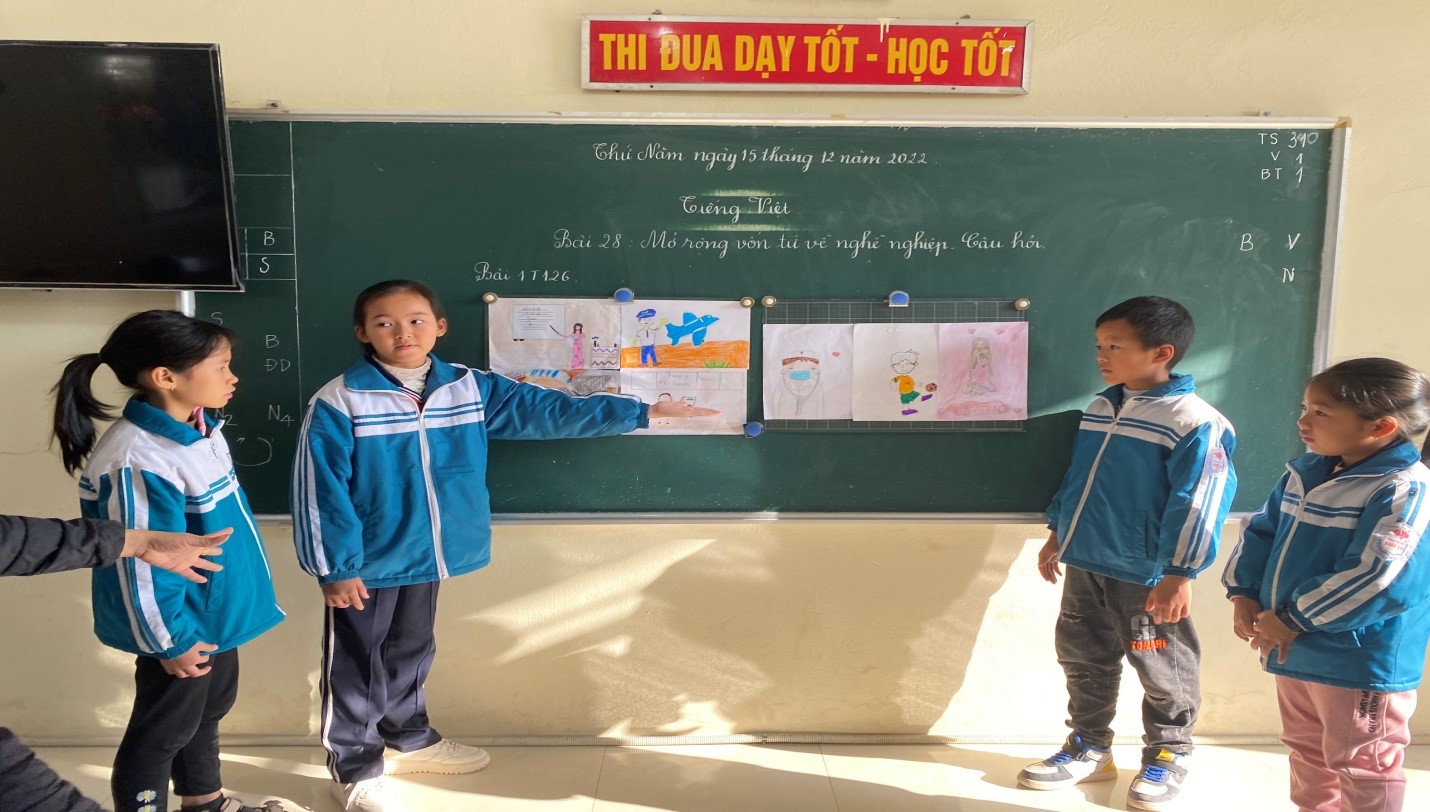 Vừa qua, các bạn nhỏ lớp 3 đã học bài: “Mở rộng vốn từ về nghề nghiệp - Câu hỏi”. Để giúp các bạn nhận biết và nắm chắc về mảng kiến thức này, các cô giáo lớp 3 đã tổ chức cho học sinh tham gia hoạt động sáng tác từ điển bằng tranh, diễn tả nghề nghiệp bằng ngôn ngữ hình thể.