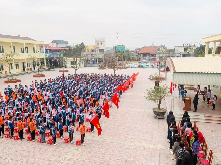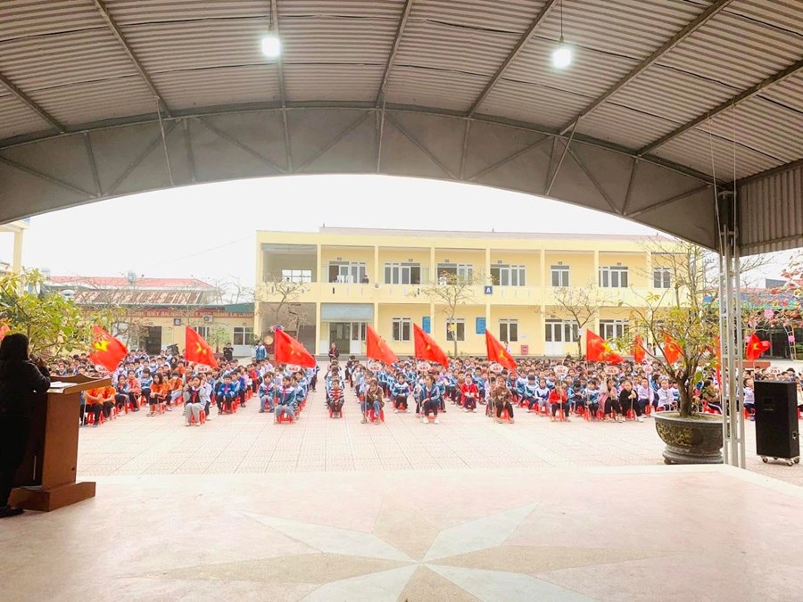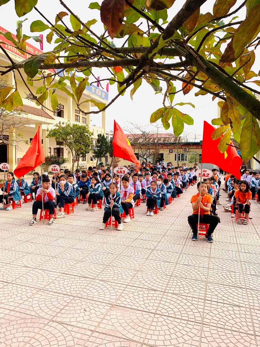 Về dự với buổi lễ chào cờ, cô Nguyễn Thị Chung - Bí thư Chi bộ - Hiệu trưởng nhà trường đã tuyên dương những thành tích các lớp đã đạt được trong tháng 2 và nhắc nhở một số nội dung trọng tâm trong tháng 3. Nhân dịp này Liên đội đã phát động tuần lễ cao điểm kỉ niệm 60 năm phong trào " Nghìn việc tốt" nhân rộng các tấm gương tiêu biểu nhặt được của rơi trả lại người mất, tích cực chăm sóc cây xanh, tích cực chia sẻ việc nhà với gia đình...