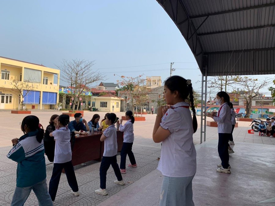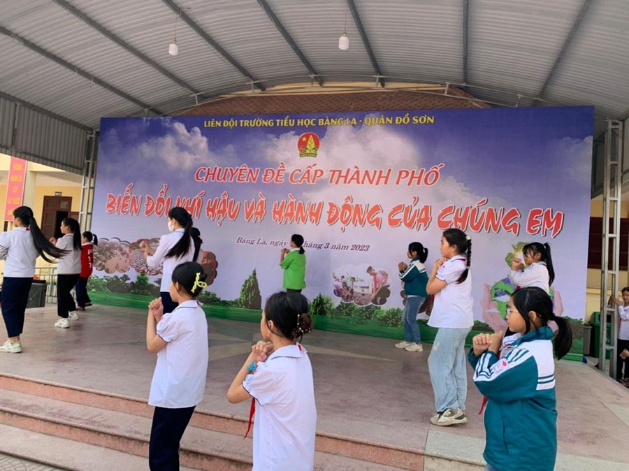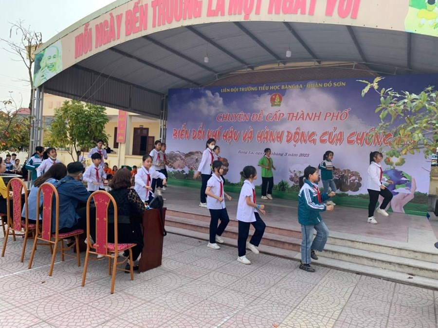 Buổi kiểm tra sơ duyệt của Quận đoàn Đồ Sơn về công tác chuẩn bị và tập luyện chuyên đề cấp Thành phố của Liên đội Tiểu học Bàng La.