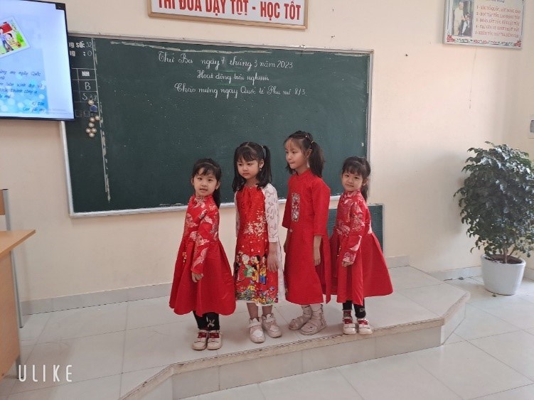 Hưởng ứng “ Tuần lễ Áo dài” do trung ương Hội Liên Hiệp Phụ Nữ Việt Nam phát động, và kỷ niệm 113 năm ngày Quốc tế Phụ nữ 8/3. Cô và trò lớp 1A1 trường Tiểu học Bàng La tích cực tham gia hưởng ứng với nhiều hoạt động ý nghĩa, thiết thực.