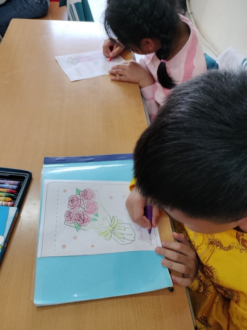 Các bạn học sinh đang háo hức tự làm những tấm bưu thiếp thật đẹp, để giành tặng mẹ và cô giáo của mình đấy. Các bạn còn thể hiện tình cảm với mẹ và cô qua những lời chúc rất ý nghĩa nữa nhé! Chúng mình hãy cùng ngắm nhìn món quà của các bạn nhỏ lớp 1A1 giành tặng mẹ và cô giáo nào!