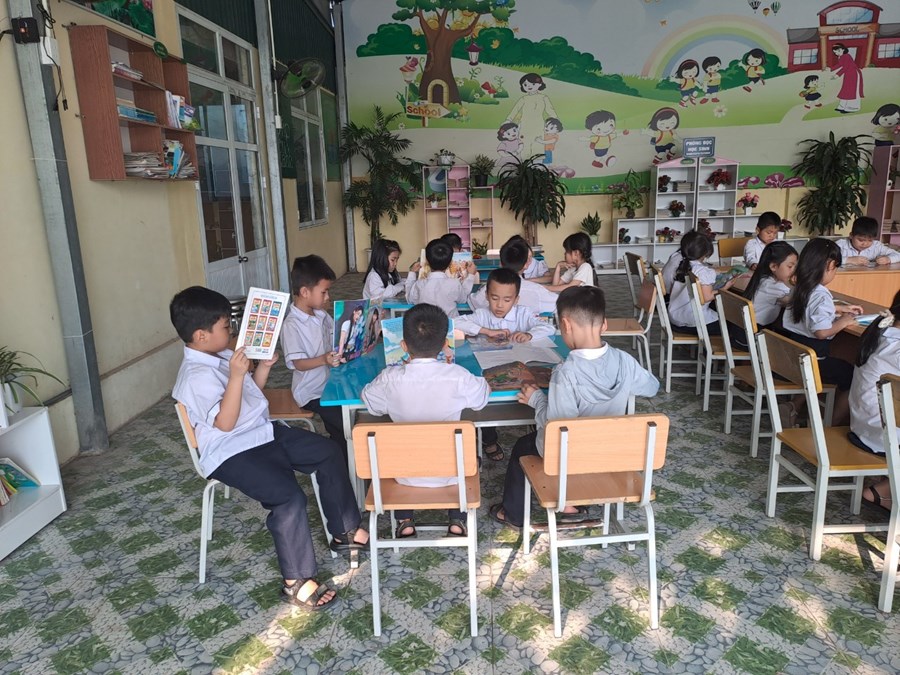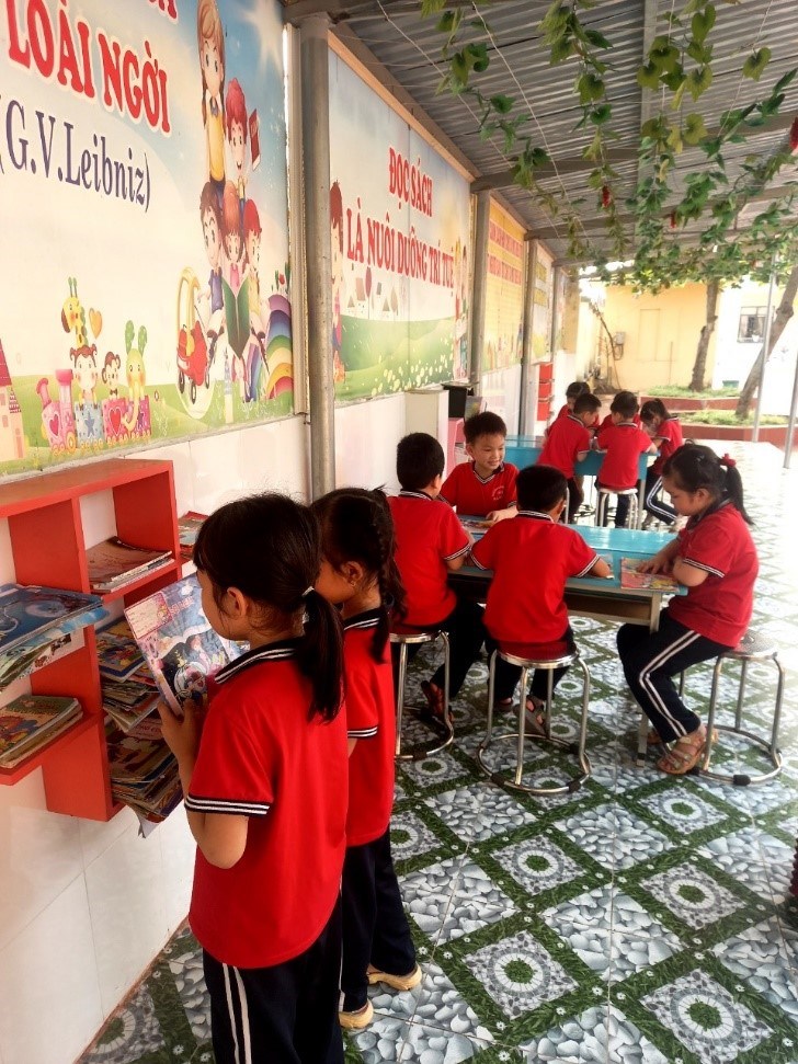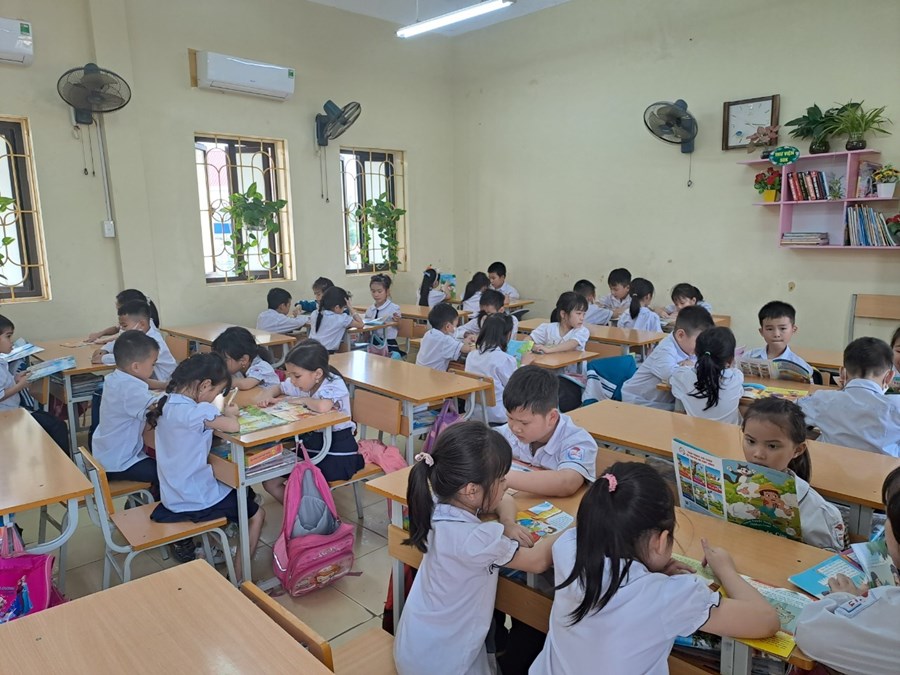 Thấm nhuần khẩu hiệu trên và với mong muốn mỗi học sinh sẽ luôn là những bông hoa tươi thắm, luôn sống yêu thương và hiểu biết ngay từ khi còn là học sinh lớp 1 các thầy cô trong khối luôn tạo cho các em thói quen làm bạn với những cuốn sách. Để từ đó có thể hạn chế được những thói hư tật xấu góp phần xây dựng một ngôi trường văn minh, văn hoá và tri thức.